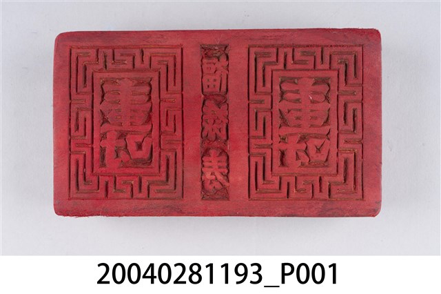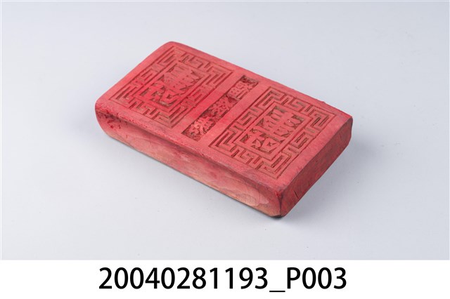 金銀紙如同人間的錢幣,具有通行買路及支付生活基本費用等功能,由於國人認為無論是神所屬的靈界或人死後所屬的冥界,皆有使用錢幣作為日常生活的需求,因而針對不同的祭祀對象而準備不同的金紙、銀紙或紙錢是有必要的。本件在板印中間有長條的福祿壽字樣,兩邊以壽字為以壽字紋,通常應用在相關金銀紙包裝後側面打樣用。