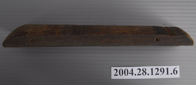 1.本物件為木製品,原本為組合品,此物件為木桶旁邊的所用的木片。 2.用途:舊時不時興「化學肥料」,用的都是「有機肥料」,除了人類排泄物「水肥」之外,更自家製作堆肥,以家禽、家畜的排泄物,尤其是牛欄內泥地鋪的稻草滿布牛的排泄物最為肥沃,挑到田間,早期都從城市裡收集水肥,裝在扁擔掛著的大木桶內,以勺子舀出澆肥。
