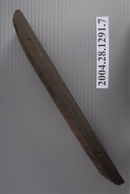 1.本物件為木製品,原本為組合品,此物件為木桶旁邊的所用的木片。 2.用途:舊時不時興「化學肥料」,用的都是「有機肥料」,除了人類排泄物「水肥」之外,更自家製作堆肥,以家禽、家畜的排泄物,尤其是牛欄內泥地鋪的稻草滿布牛的排泄物最為肥沃,挑到田間,早期都從城市裡收集水肥,裝在扁擔掛著的大木桶內,以勺子舀出澆肥。