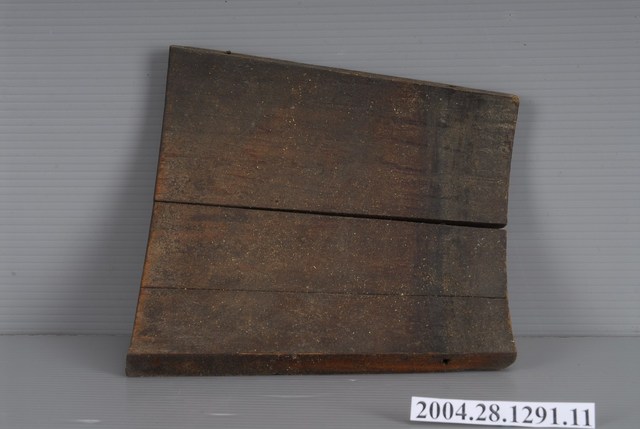 1.本物件為木製品,原本為組合品,此物件為木桶旁邊的所用的木片。 2.用途:舊時不時興「化學肥料」,用的都是「有機肥料」,除了人類排泄物「水肥」之外,更自家製作堆肥,以家禽、家畜的排泄物,尤其是牛欄內泥地鋪的稻草滿布牛的排泄物最為肥沃,挑到田間,早期都從城市裡收集水肥,裝在扁擔掛著的大木桶內,以勺子舀出澆肥。