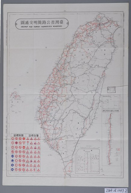 內圖標題卻是「臺灣省公路簡明交通圖」,繪製範圍為臺灣、澎湖及附屬島嶼,本圖屬交通圖,且凸顯公路交通的重要性,所以鐵路線不顯著,底圖為縣市別行政區域圖。公路按國道、省道、縣道各級分類並標示編號,計畫路線以虛線表示,並有相距里程數,其他各級行政治所和名勝古蹟也附加在上。本圖有經緯網格,地圖上方指北。背面有基隆、臺北、臺中、臺南、高雄5市的簡明市街圖,和交流道聯絡道路系統示意圖。