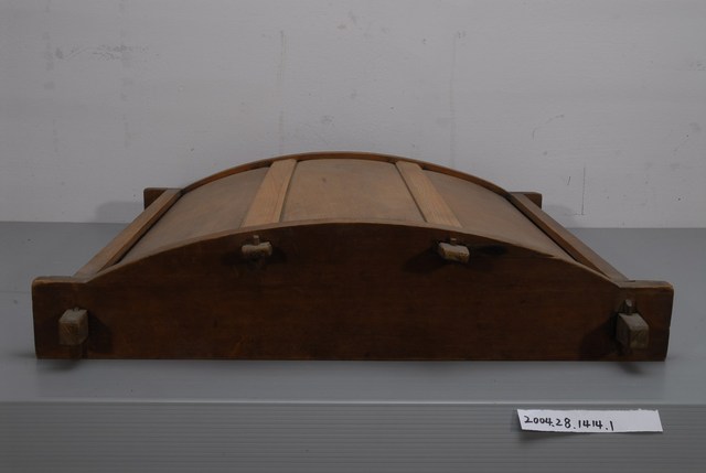 1.本件為方形圓頂木蒸籠組之頂蓋,頂部呈圓弧狀,其周邊呈四角形,可與籠身接合,以減少蒸氣外洩,整體以木材接榫製成,材質相當厚重。由於以木料製造的蒸籠容易吸收多餘的水蒸氣以避免附著在食物上,進而使料理更加美味,故而許多不少講求蒸煮風味的廚人,在環境允許下,還是喜用這類的蒸籠。
