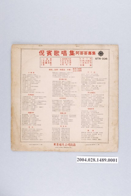 東昇唱片公司發行編號「STA-006」華語歌曲專輯《倪賓之歌阿哥哥專集第一集》12吋塑膠唱片
