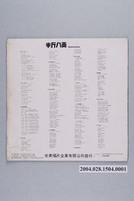 光美唱片公司發行編號「KM-2119」粵語歌曲專輯《半斤八兩》