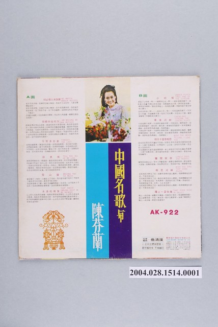 麗歌唱片公司發行編號「AK-922」華語歌曲專輯《中國名歌與陳芬蘭》