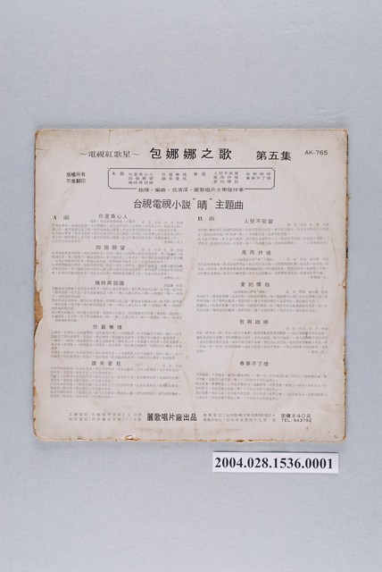 麗歌唱片廠發行編號「AK-765」華語歌曲專輯《包娜娜之歌第五集》12吋塑膠唱片