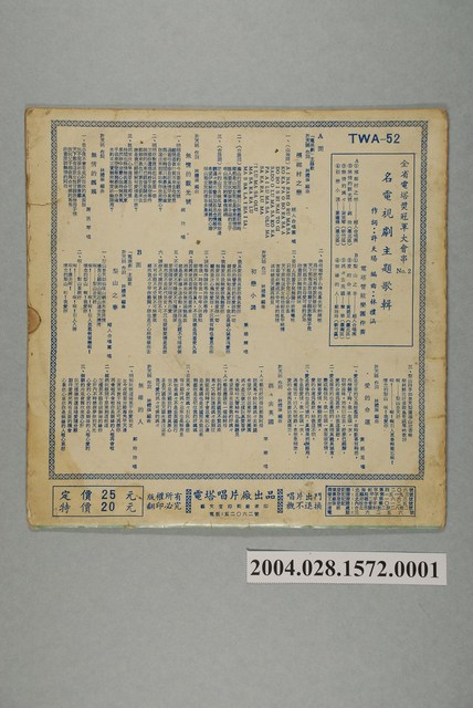 電塔唱片公司發行編號「TWA-52」臺語歌曲專輯《全省電塔獎冠軍大會串第二集》10吋塑膠唱片