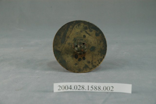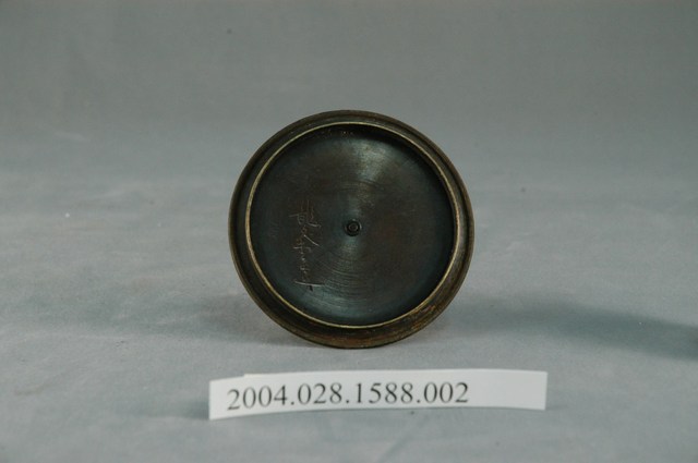 本件器蓋為龍文堂製鑄鐵雙口溫酒器部件之2,通身以黃銅製作,呈長8.7公分,寬8.7公分,高2.5公分。蓋面呈平面式,蓋緣與器身口部外徑切合,為罩蓋樣式。頂面中心處以兩個相對的花朵組合呈鏤空形的圓球,作蓋鈕。蓋內雕刻有製作銘文為「龍文堂造」。