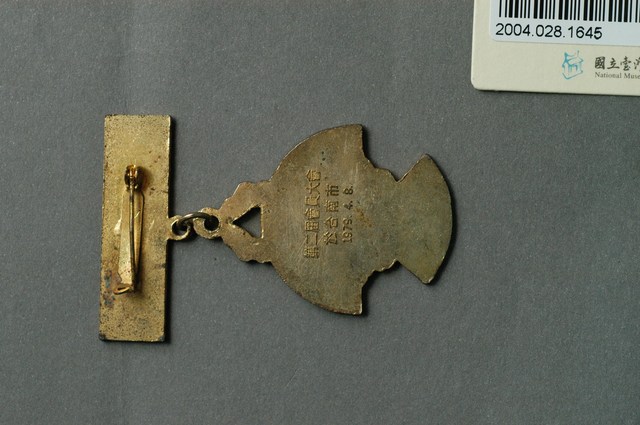 此物件為紀念章,輪廓為圓形,核心為獅子會標誌,外圈鑄有「LOVE•COMPASSION •SPIRIT∕IN ACTION」字樣,紀念章上端以短鍊連結一件鑄有「國際獅子會中華民國300D區」字樣之橫牌。 本件所提之國際獅子會(Lions Clubs International)源起於美國,為一國際性的服務性社團。中華民國為獅子會繼美國、加拿大之後成立分會之國家,最早於1926年於天津成立,但在二戰期間各分會都暫停運作,而中華民國分會則是直到中華民國政府遷台後,才在1950年菲律賓獅子會代表蔡顯祖建議下於1953年在臺北重新創立中華民國分會。獅子會的主要活動為社會服務以及會內的社交、進修,著名的服務為成立眼庫保存並提供眼角膜給有需要之患者做移植。 獅子會在中華民國的會務與中國國民黨有相當程度的關聯。由於在國共戰爭中的失利,蔣中正試圖重新改造國民黨,並在1950年中常委通過「中國國民黨改造方案」、設立中央改造委員會,開始深入各種民眾團體,而身為國際社團的獅子會成為可以宣揚外交的重點深入目標。具體的關聯為獅子會核心成員即為國民黨高層,如第一任會長楊繼曾即為全代會黨部工礦代表,而副會長曾盧白為中央改造委員會委員,另外也在獅子團的世界年會中進行政治外交活動,如1971年於美國拉斯維加斯城舉辦的54屆世界年會上,公開宣傳並邀請與會人員參與反對中共進入聯合國的簽署運動。