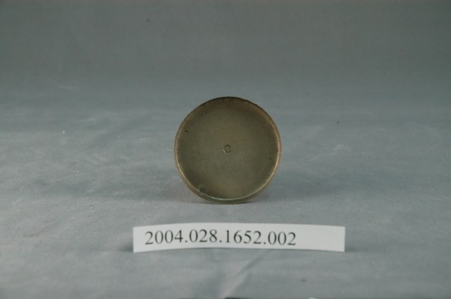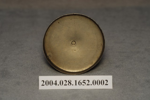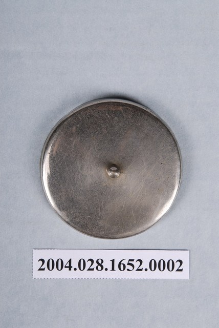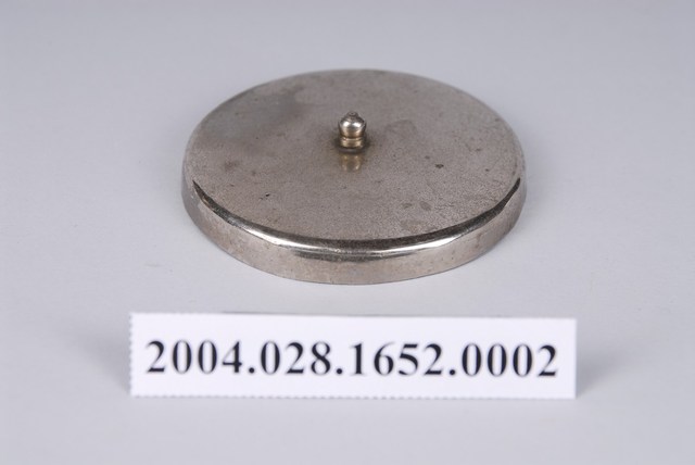 本物件為消毒筒鐵蓋。一小金屬圓蓋,頂上有凸起處。