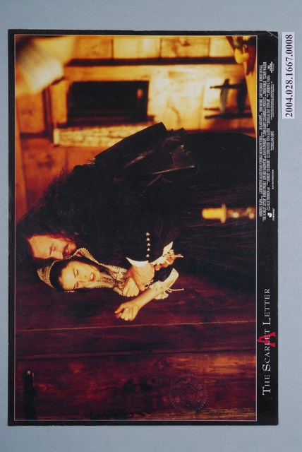本件下方另有英文片名THE SCARLET LETTER、電影公司CINERGI(西諾吉)的商標圖樣,以及本片的演職員名單,包括:出品人ANDREW G.VAJNA(安德魯維那)、導演ROLAND JOFFE(羅蘭約非),男女主角DEMI MOORE(黛咪摩爾 )、GARY OLDMAN(蓋瑞歐德曼)、ROBERT DUVALL(勞勃杜瓦)、男女配角ROBERT PROSKY、EDWARD HARDWICKE、JOAN PLOWRIGHT,音樂JOHN BARRY、服裝設計GABRIELLA PESCUCCI、剪接THOM NOBLE等。