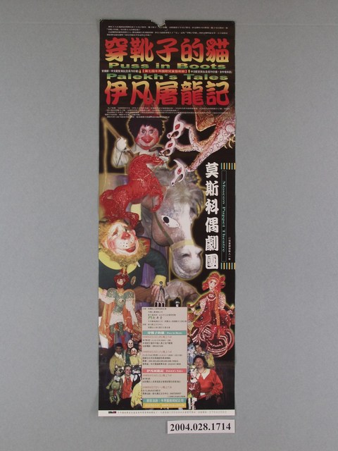 2004.028.1714 《第七屆牛耳國際兒童藝術節:莫斯科偶劇團-穿靴子的貓,伊凡屠龍記》活動海報