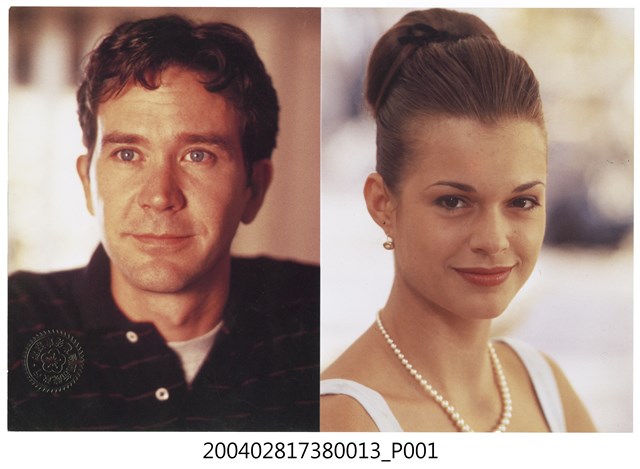 1.美國電影《情定巴黎》在臺灣上映宣傳發行的彩色印刷劇照,分為左右兩張照片。左方為飾演男配角的提摩西赫頓,而右方則飾演女配角的蘇珊安貝。《情定巴黎》為1995年出品的愛情喜劇,由梅格萊恩、凱文克萊、提摩西赫頓主演,描述一名患有飛行恐懼症的女子,遠從加拿大飛到坎城為了贏回出軌未婚夫的心,卻在飛機上遇見了一位英俊法國盜賊的故事。