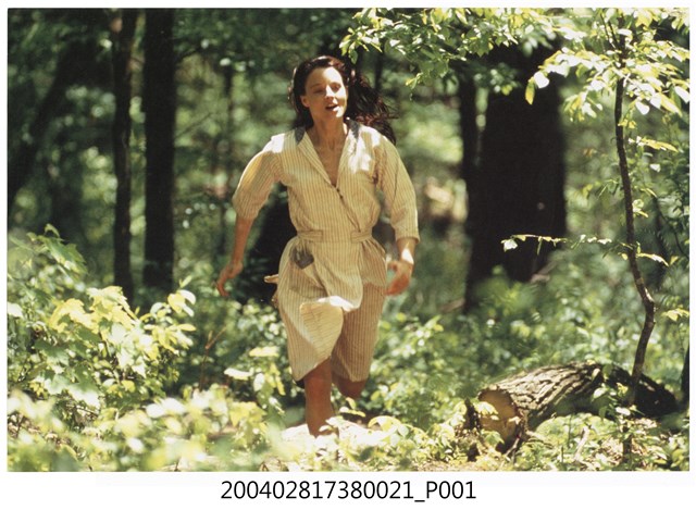 1.美國電影《大地的女兒》在臺灣上映宣傳發行的彩色印刷劇照,照片上為飾演女主角的茱蒂福斯特正在叢林裡奔跑的模樣。《大地的女兒》為1994年出品的劇情片,由茱蒂福斯特、連恩尼遜、娜塔莎李察遜主演,描述一名長年居住深山與世隔絕的叢林女孩,逐步接觸文明社會的故事。