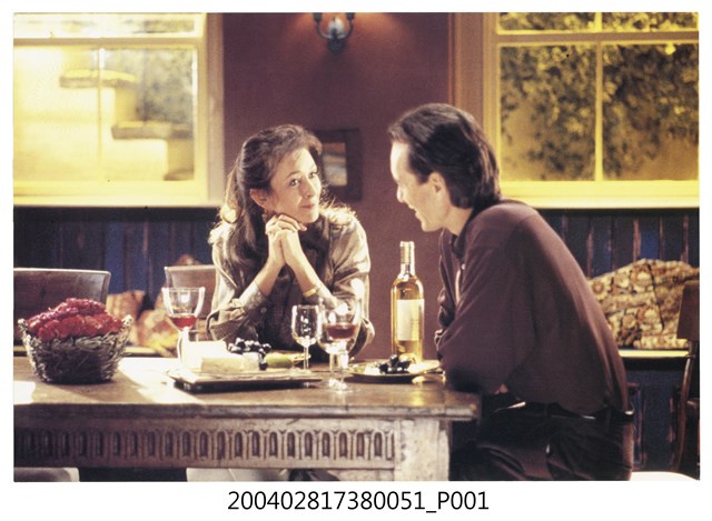 1.電影《親親我的愛》在臺灣上映宣傳發行的彩色印刷劇照,照片上為男主角理查格蘭特及女配角雪兒露芙,兩人正坐著享受紅酒蛋糕並愉快約會聊天的模樣。《親親我的愛》為1995年英法合製出品的劇情片,由理查格蘭特、莎曼珊瑪西絲主演,描述男主角在妻子難產而死之後傷心欲絕,但為照顧愛妻所遺留下的女嬰只得重新振作,並僱用一位年輕又充滿愛心的褓母所引發的一連串故事。