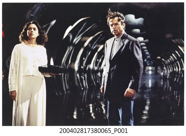 1.美國電影《戰慄黑洞》在臺灣上映宣傳發行的彩色印刷劇照,照片上右方為飾演男主角的山姆尼爾,他與女主角茱莉卡門正站立在一黑暗隧道裡。《戰慄黑洞》為1994年出品的恐怖片,由約翰卡本特執導,山姆尼爾、茱莉卡門主演,描述一位保險調查員及出版社女編輯,一同前往小鎮為尋找失蹤的暢銷作家,卻發現鎮上所發生的謀殺案竟與小說內容不謀而合的驚悚故事。