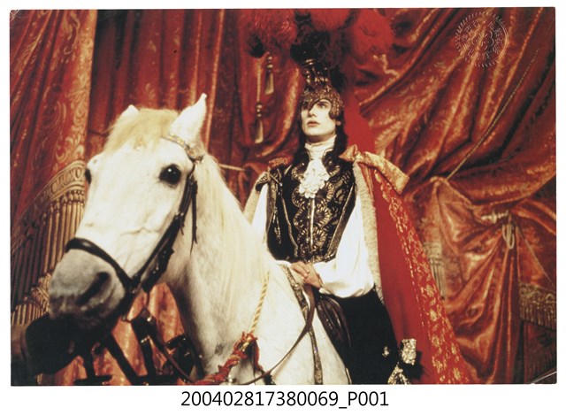 1.電影《絕代豔姬》在臺灣上映宣傳發行的彩色印刷劇照,照片上為飾演男主角的史提法諾戴尼斯,正盛裝騎在一匹白馬上的模樣。《絕代豔姬》為1994年比利時、義大利、法國合製出品的傳記電影,由史提法諾戴尼斯主演,描述18世紀義大利美聲閹伶費里尼利的傳奇歌唱生涯及成長經歷故事。本片獲1995年金球獎最佳外語片,以及奧斯卡最佳外語片提名。