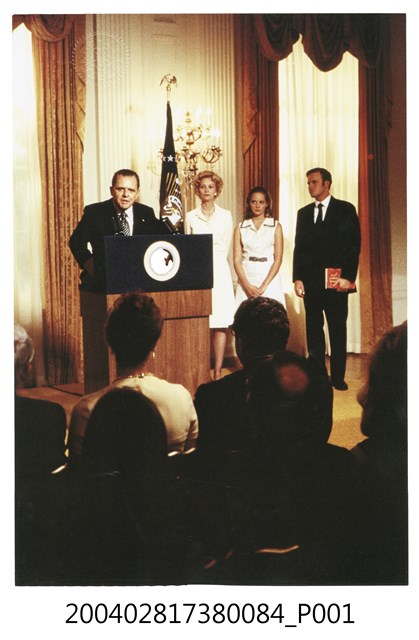 1.美國電影《白宮風暴》在臺灣上映宣傳發行的彩色印刷劇照,照片上為飾演尼克森總統的男主角安東尼霍普金斯,正站立在臺上召開記者會的模樣;其旁應為飾演其妻的美國女演員瓊愛倫。《白宮風暴》為1995年出品的美國傳記電影,由奧利佛史東執導,安東尼霍普金斯主演,描述美國總統尼克森從童年時代、至擔任美國總統後卻因政治醜聞「水門案」而請辭下臺的故事。本片並榮獲奧斯卡獎四項提名。
