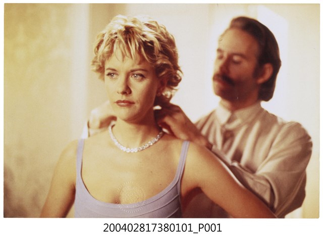 1.美國電影《情定巴黎》在臺灣上映宣傳發行的彩色印刷劇照,照片上為飾演男主角的凱文克萊正在替飾演女主角的梅格萊恩戴項鍊的模樣。《情定巴黎》為1995年出品的愛情喜劇,由梅格萊恩、凱文克萊、提摩西赫頓主演,描述一名患有飛行恐懼症的女子,遠從加拿大飛到坎城為了贏回出軌未婚夫的心,卻在飛機上遇見了一位英俊法國盜賊的故事。
