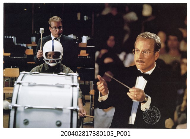 1.美國電影《春風化雨1996》在臺灣上映宣傳發行的彩色印刷劇照,左邊照片為男主角李察德瑞福斯正在指導學生打鼓的模樣,而右方照片則是他正在臺上指揮樂團表演時的模樣。《春風化雨1996》為1995年出品的劇情片,由史蒂芬哈瑞克(Stephen Herek)執導,李察德瑞福斯、葛蘭妮哈蒂、泰倫斯豪爾等主演,描述一名心懷大志的音樂家委身擔任一所高中的音樂老師,將其三十多年青春奉獻於學校,同時卻無法面對其兒子是聾子的心路歷程故事。