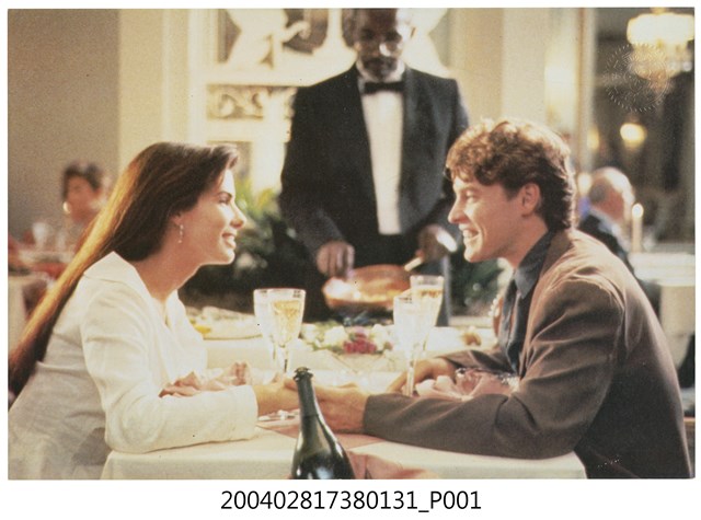 1.美國電影《浪漫女人香》在臺灣上映宣傳發行的彩色印刷劇照,照片上為飾演男女主角的泰特唐納文及珊卓布拉克,兩人正坐在西餐廳相視而笑的模樣。《浪漫女人香》為1992年出品的美國愛情喜劇,由珊卓布拉克及泰特唐納文主演,描述兩位心理學家因「愛情9號香水」所引發的一連串愛情趣事。