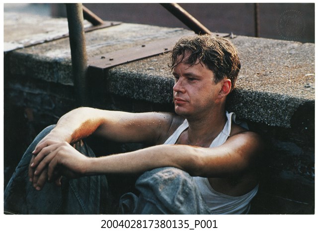1.美國電影《刺激1995》在臺灣上映宣傳發行的彩色印刷劇照,照片上為飾演男主角的提姆羅賓斯,他正身穿白色背心汗衫獨自坐靠在監獄某處的模樣。《刺激1995》為1994年出品的美國劇情片,法蘭克戴瑞邦(Frank Darabont)導演,提姆羅賓斯、摩根費里曼等主演,改編自史蒂芬金的原著小說,描述一位被控殺妻含冤入獄的銀行家,在二十年的鐵窗生涯後,決心逃獄的故事。