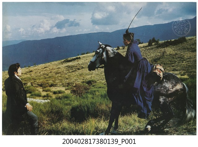 1.法國電影《屋頂上的騎兵》在臺灣上映宣傳發行的彩色印刷劇照,照片上為飾演女主角的茱麗葉畢諾許,正在荒野之中策馬前進的模樣,而前方則站立一名男子似正與之對話。《屋頂上的騎兵》為1995年出品的法國戰爭愛情電影,由由尚保羅哈本諾(Jean-Paul Rappeneau)執導,茱莉葉畢諾、奧利維馬丁尼茲主演,描述1832年霍亂肆虐的法國南部,一名欲策動革命的年輕義大利騎兵,愛上一名丈夫失蹤的法籍美麗佳人的亂世愛情故事。