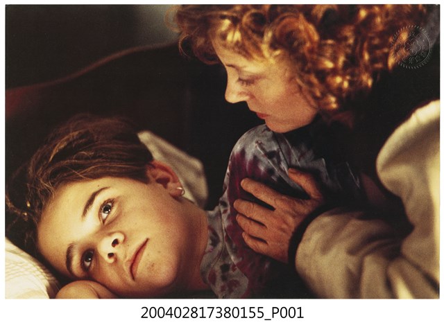 1.美國電影《甜蜜的背叛》在臺灣上映宣傳發行的彩色印刷劇照,照片上為飾演女主角蘇珊莎蘭登正在安撫躺床上睜著眼的小男孩。《甜蜜的背叛》為1994年出品的劇情片,由蘇珊莎蘭登、山姆謝普等主演,描述一名育有七個兒子的家庭主婦,在長達25年的婚姻生活之後正與丈夫處於分居狀態,但就在此時,兒子的意外噩耗傳來,使她再度成為家庭支柱的故事。