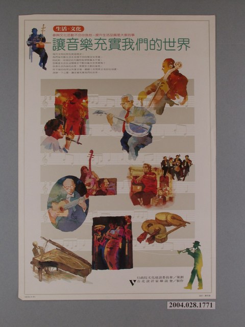 2004.028.1771 蘇宗雄繪《生活+文化/讓音樂充實我們的世界》海報