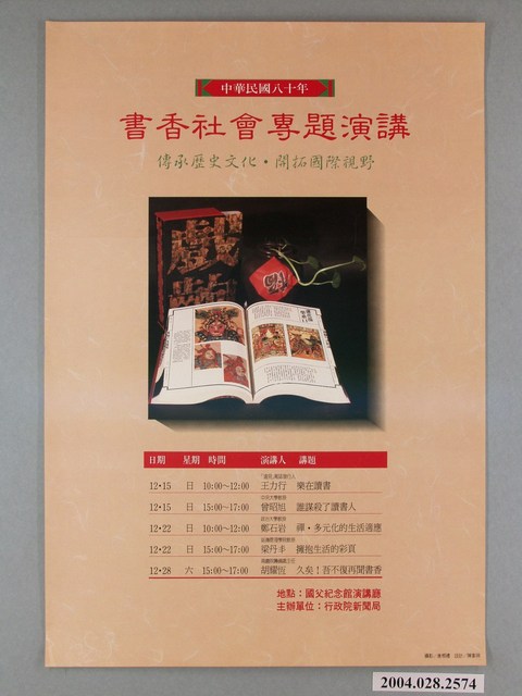 2004.028.2574 行政院新聞局辦理「書香社會專題演講」海報