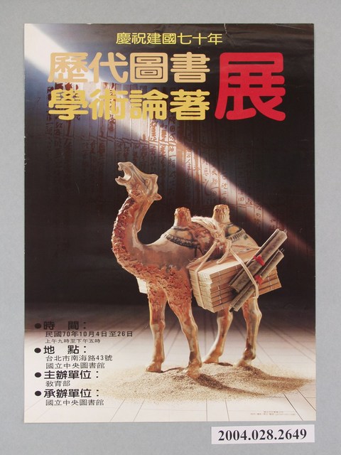2004.028.2649 慶祝建國七十年歷代圖書學術論著展宣傳海報