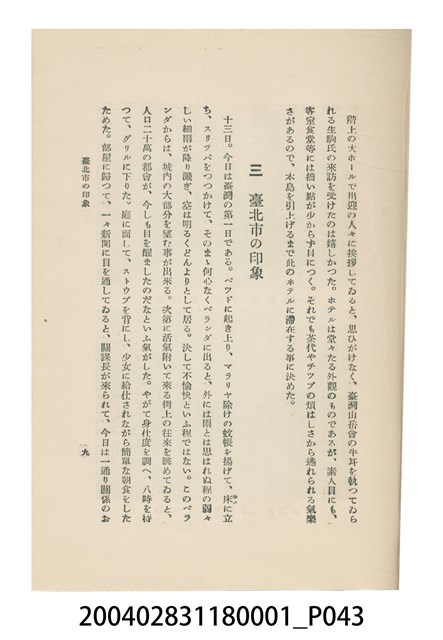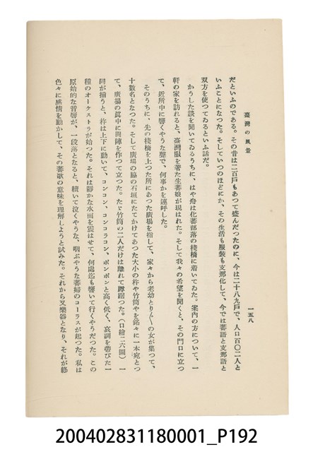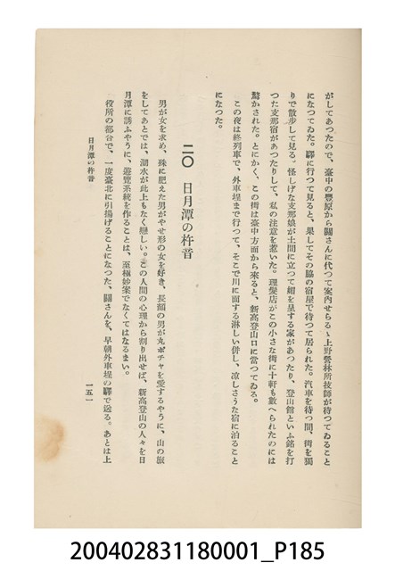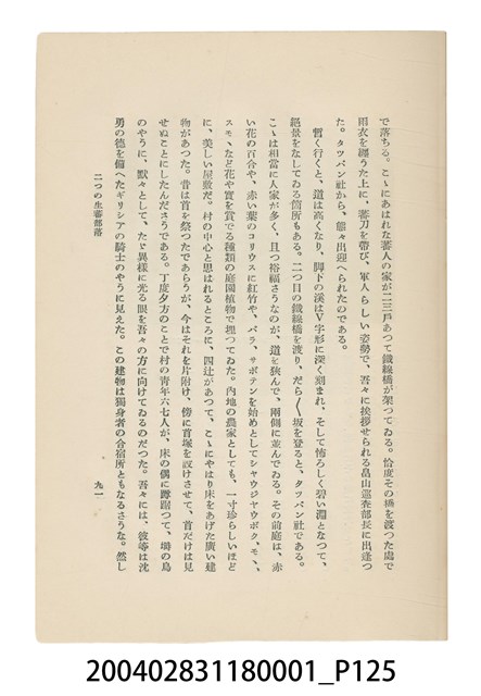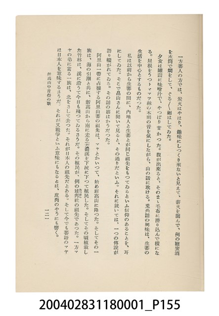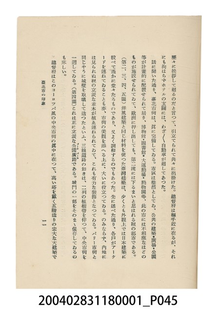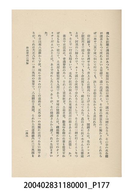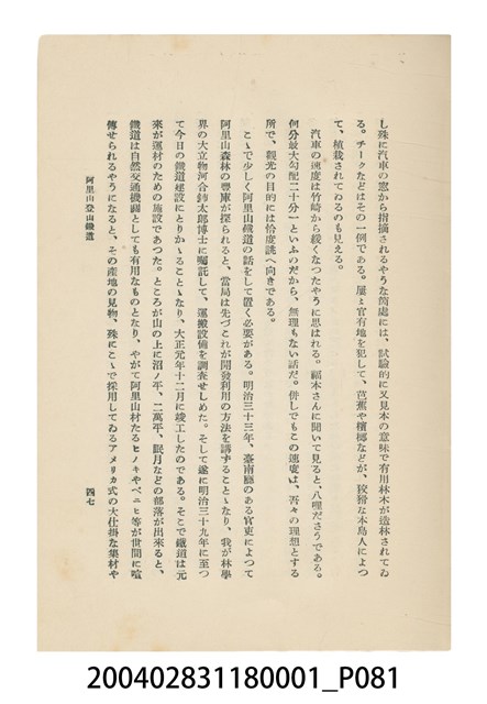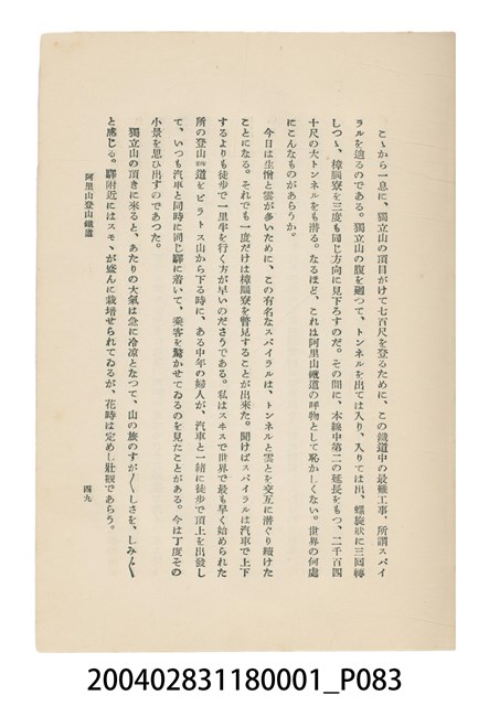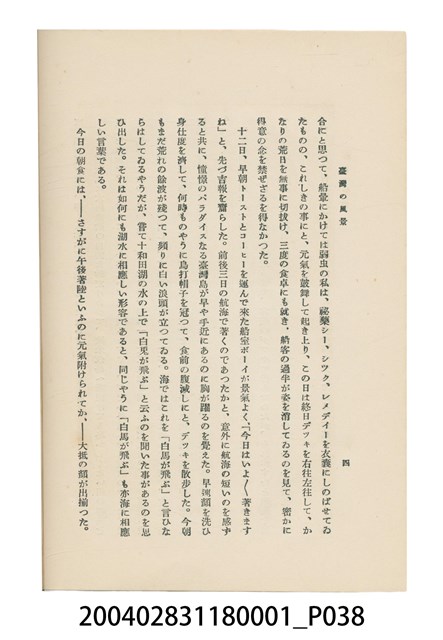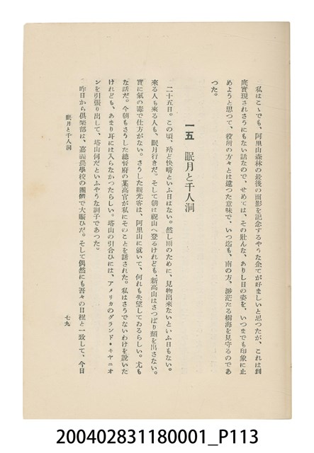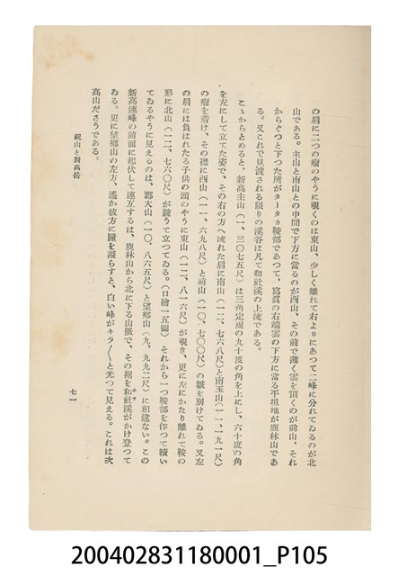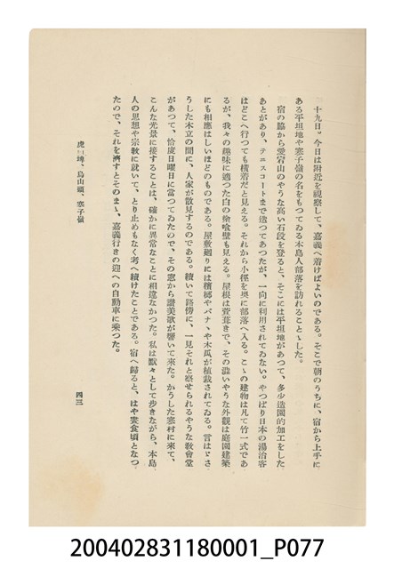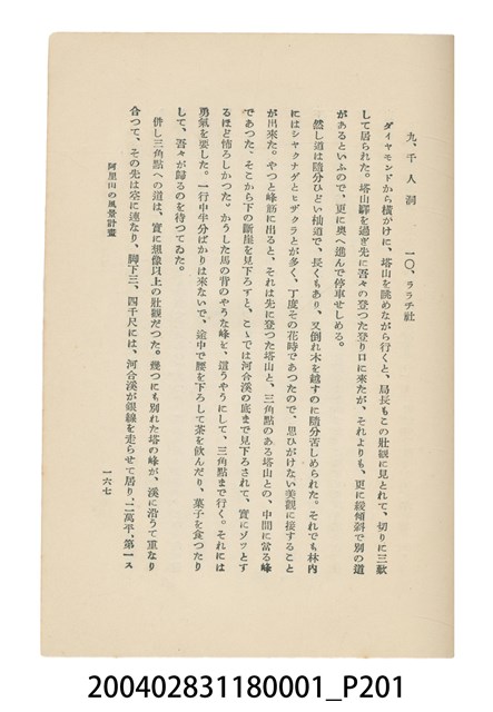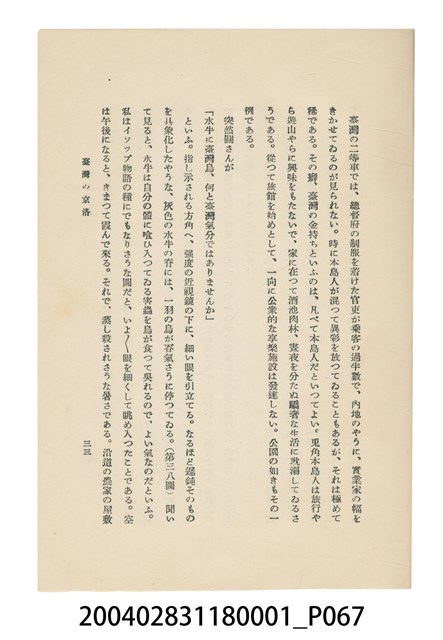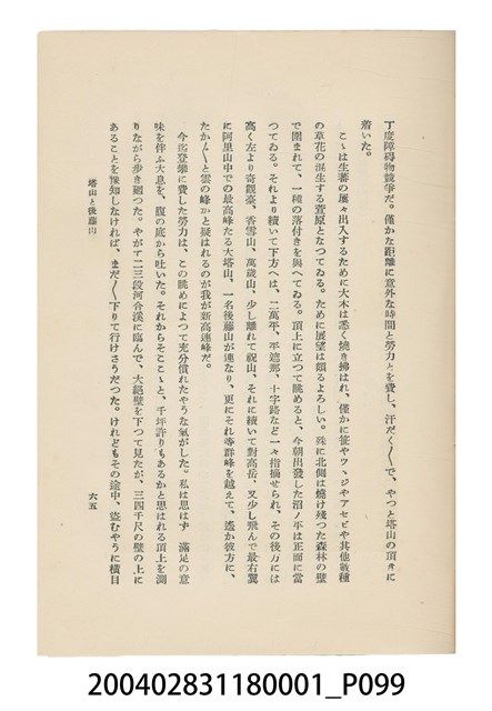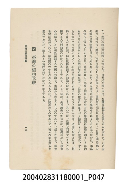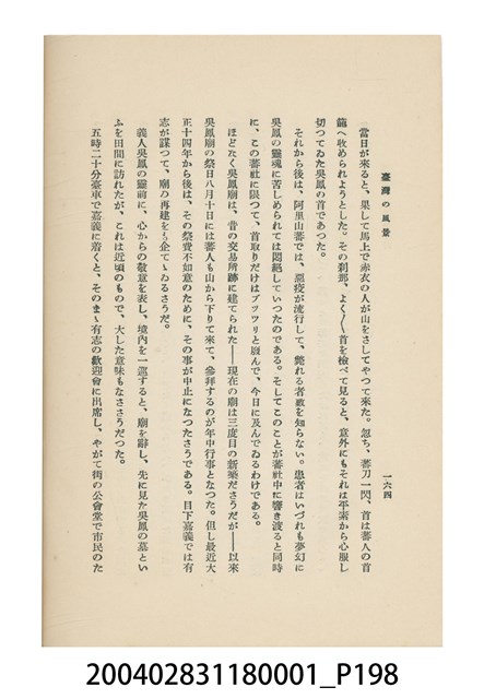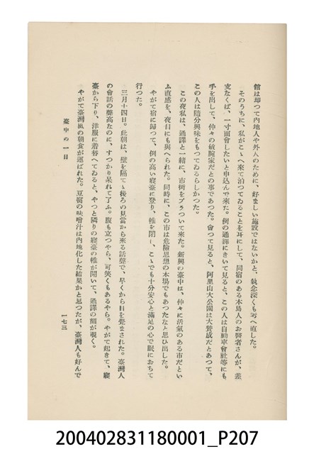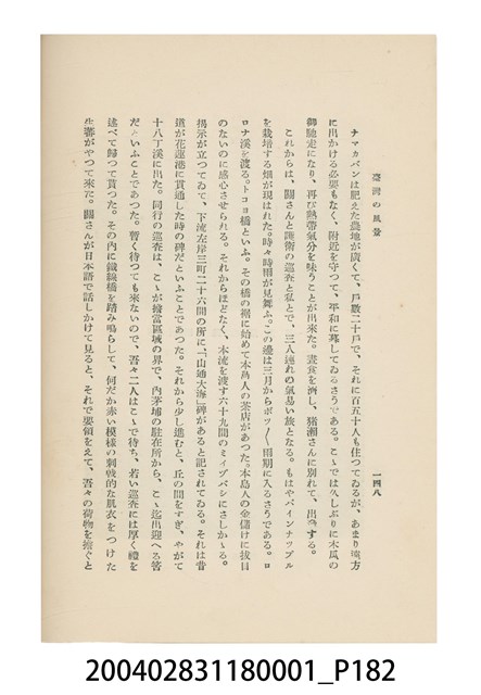 本物件為發行於昭和3年(1928)之《臺灣的風景》,為林學博士田村剛所著。其書殼上有「雄山閣圖書出版株式會社」的標籤以及「定價壹圓八十錢」的印戳。其封面及封裡有臺灣風景的彩色圖繪,畫風筆觸簡約,留白處多。其收錄了白底黑色線條之臺灣全圖、新高山及阿里山附近地圖,以及26張口繪圖,例如:林本源氏庭園、新竹公園、泥火山、、臺南市孔子廟、嘉義公園、雲海的獨立山、二萬坪的塔山、生蕃的家等。其他插圖共三十六張,例如:臺灣人的家、吳子諭氏庭院、陳有蘭溪、虎頭埤、吳氏庭院、男女島等。其內容章節包括:航海;基隆到臺北;臺北市的印象臺灣的植物景觀;林本源氏的庭院;南行;臺灣的京洛;虎頭埤、烏山頭、寒子嶺;阿里山登山鐵道;塔山的百相;海拔七千尺的部落;塔山及後藤山;祝山及對高岳;香雪山及萬歲山;眠月及千人洞;生蕃部落;鹿林山的山中小屋;新高山中首祭的歌;新高登山的冒險;日月潭的杵音;阿里山的風景計畫;臺中的一日;大屯山及淡水;下關的遭難等。