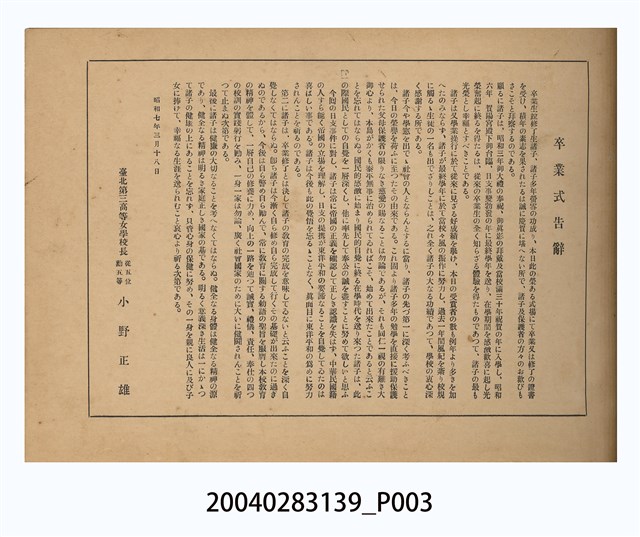 2004.028.3139 《臺北第三高等女學校第9屆畢業畢業紀念冊》
