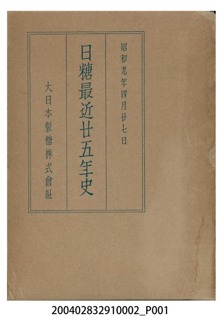 2004.028.3291.0001 西原雄次郎編《日糖最近廿五年史》
