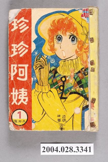 1.本件《珍珍阿姨》漫畫共四集,為合訂本,由伯雄與昭華所合畫。2.本件封面由一頭戴花帽,身穿洋裝的淑女為構圖,畫風具有歐美漫畫風格。由於是四集合訂,封底應是由某類包裝的硬紙板所訂裝而成。內容以珍阿姨和安愛玲一起生活的點滴,尤其是安愛玲在校園的生活為故事為敘述脈絡。