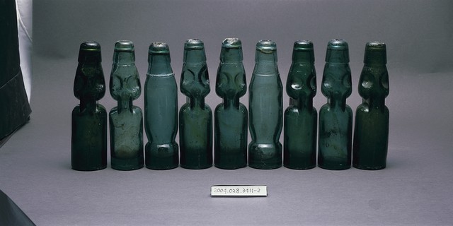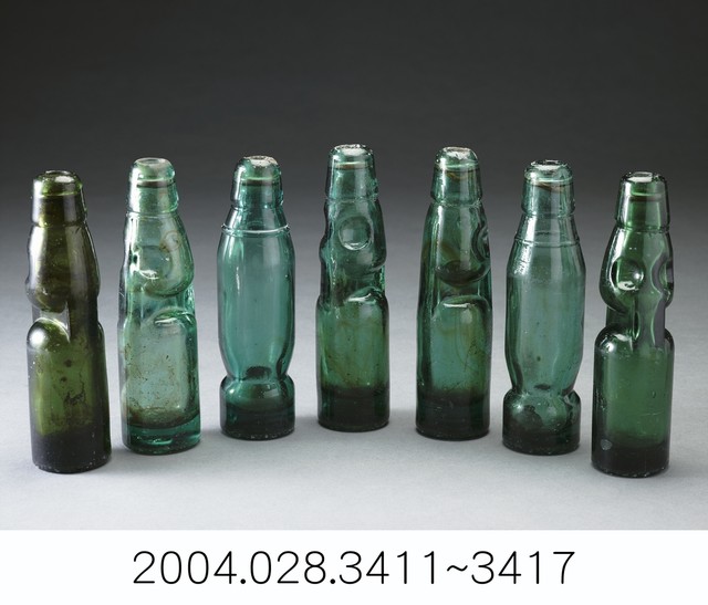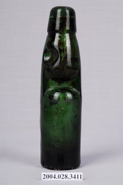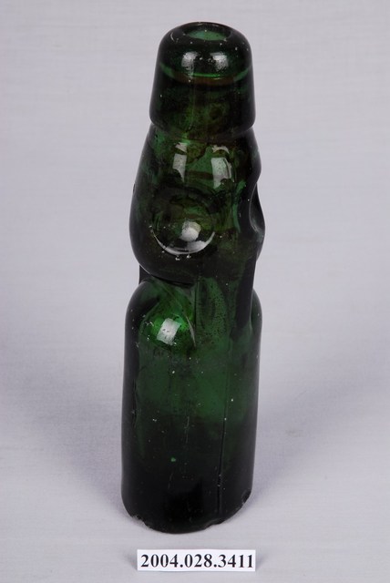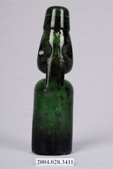 2004.028.3411 深綠色圓柱形彈珠汽水瓶