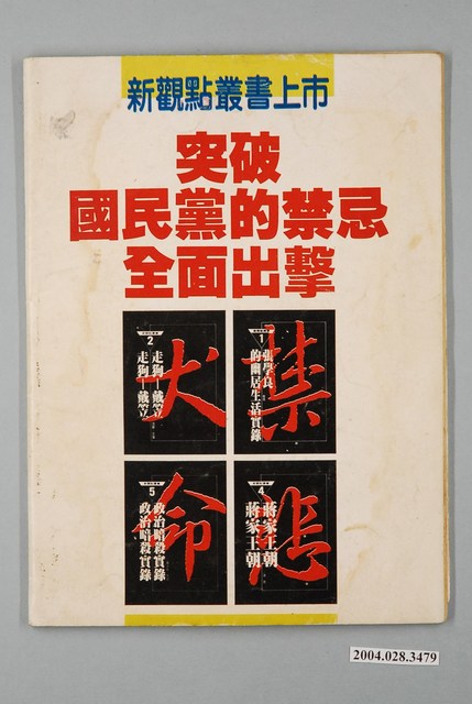 此為一紙質雜誌,封面採用橫向的封面設計,在封面上方寫有本書標題、期號、出版日期,左上方則標出此期刊物為選舉專刊,並在封面刊有照片做封面設計,同時也節錄本刊物的部份內容,背面則刊有新觀點叢書的廣告。此書為新觀點雜誌出版社1986年出版的《新觀點週刊》第36號。 此物件為在1986年創辦的《新觀點》系列雜誌其一,創辦人為陳世傑,為批判政府的黨外雜誌其一,此雜誌目的是要興辦突破戒嚴的言論審查、貫徹言論自由,並如同該刊物的創辦語「縮頭是一刀,伸頭也是一刀」的覺悟敢論敢言。此雜誌的特色為陳水扁每期皆為其撰寫社論,而陳水扁為臺灣近代社會運動的重要人物之一,以美麗島大審的辯護律師發跡,並在「蓬萊島案」及一系列的事件中扶搖直上,並先後擔任立法委員、臺北市長及中華民國第10、11任總統。後因貪汙案導致陳水扁入獄。 「黨外」一詞主要為非中國國民黨的臺灣政治勢力,而「黨外」政治勢力,主要的宣傳方式為「黨外雜誌」,「黨外雜誌」最早如1950年代的《自由中國》、1970年代的《大學》、《臺灣政論》,後在1980年代「黨外雜誌」發展蓬勃,代表刊物為《八十年代》與《美麗島》,最終,這股媒體趨勢在1986年民進黨成立、1987年解除戒嚴之後逐漸式微。「黨外雜誌」在當時激起了臺灣民眾的民主意識,也逐步促成了言論自由開放。(蕭淑玲,2006,153-155)。