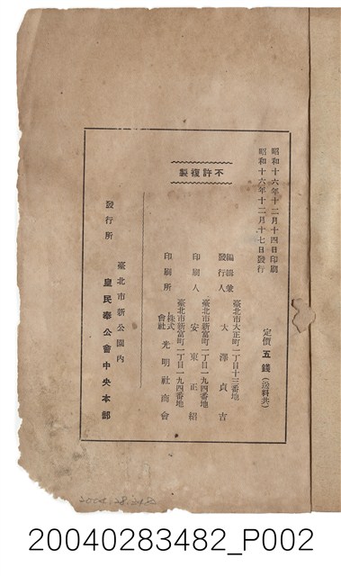 2004.028.3482 皇民奉公會中央本部出版《厚生叢書婦人的衛生》第1輯