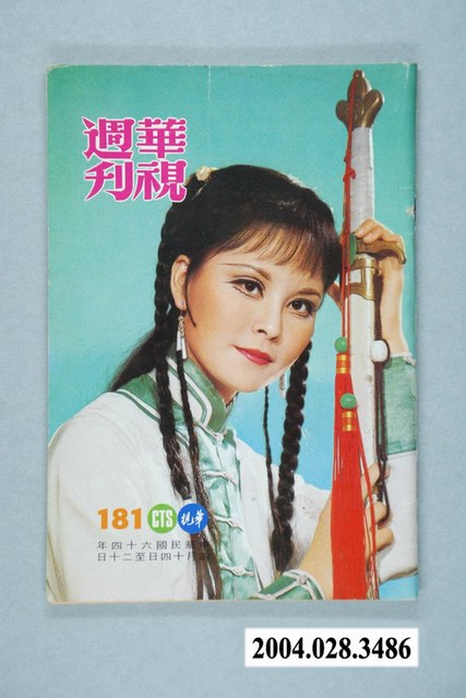 1.本文物為華視週刊雜誌第181期。發行人為劉先雲,發行所為中華電視週刊社。出版日期為民國六十四年四月十四至二十日。封面左上方印「華視週刊」,左下方印「華視 CTS 181」、「中華民國六十四年四月十四日至二十日」,中央為一著白綠色系古裝,雙手扶劍女子,為華視演員張玲。背面為VIP賓士男性化妝品之宣傳廣告。目錄頁則載有「虎尾溪義重如山」、「陶希聖:科學家看武俠劇」、「感人的保鏢」等21則報導。