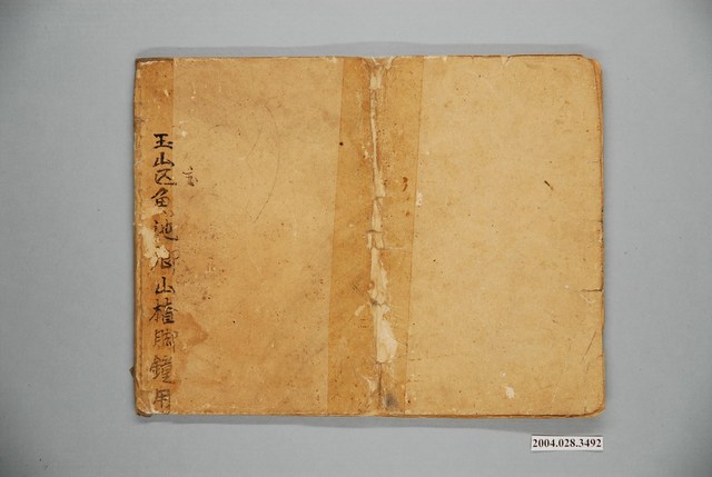 《公學校地理書附圖》,著作兼發行者為臺灣總督府,印刷所為日本大阪市精版印刷株式會社。大正13(1924)年3月25第1版發行,昭和16(1940)年6月20日第14版發行。封面寫有使用者名「鐘再生」,封底則有原使用者書寫文字「玉山區魚池鄉山楂腳鐘用」,這個地名為戰後1945-50年間使用。