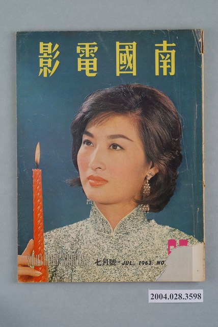 1.《南國電影》(Southern Screen)第65期,督印人鄒文懷, 總編輯梁風,由南國電影畫報社於民國52年7月出版,為月刊,共96頁。本期彩色封面人物為李香君;封裡為凌波,內附5幅彩色插頁,分別為:(1)林黛、(2)杜娟與喬莊、(3)《鳳還巢》、(4)《黑森林》及(5)關山,另附有1963年的16部邵氏新片圖畫列表,封底裡為《為誰辛苦為誰忙》電影宣傳,封底則為柯達相機及軟片的廣告。