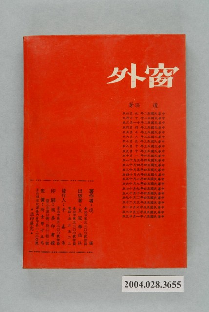 2004.028.3655 瓊瑤著《窗外》
