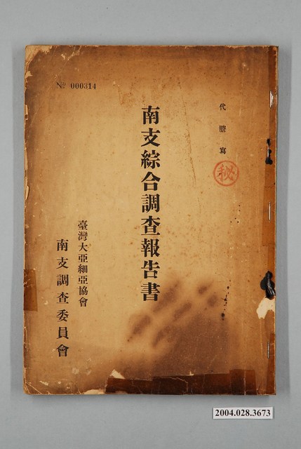 2004.028.3673 南支調查委員會發行《南支綜合調查報告書》