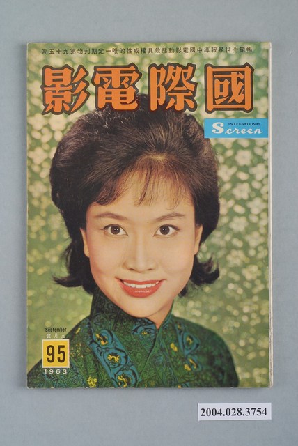 1.本物件為國際電影雜誌第95期。正面可見「國際電影」、「暢銷全世界報導中國電影動態最具權威性的唯一定期刊物」、「第九十五期」、「INTERNATIONAL Screen」字樣,右下角可見「September」、「九月號」、「95」、「1963」字樣,封面為葛蘭。該雜誌內頁可見該雜誌發行地區、片種介紹、當紅明星、影視活動宣傳及「斧標洗白粉」、「蜜絲佛陀指甲油」、「虎油 萬金油」、「力士香皂」宣傳廣告。