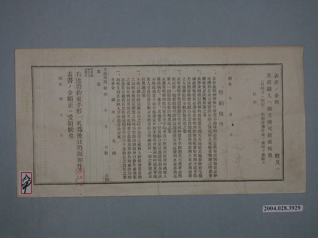 本件為昭和9年(1934)鷺洲信用購買販賣利用組合本票,付款人李江心,地址為臺北州新莊郡鷺洲庄和尚洲溪墘260番地。開票日期為昭和8年(1933)12月16日,持票人可向鷺洲信用購買販賣利用組合請領金額100円,支付期限為昭和9年2月13日,支付地點為臺北州新莊郡鷺洲庄。正面左上角貼印花稅票参錢。約束手形中譯為本票。
