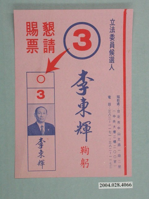 2004.028.4066 立法委員候選人李東輝競選文宣