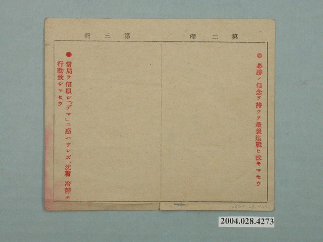 本件為防空認識票,持有人魏炳坤,昭和15年(1940)2月1日出生,戶籍地為臺中州豐原郡神岡庄三角子123番地。日治末期二次大戰期間,臺灣遭受盟軍轟炸,規定每人須隨身攜帶防空認識票,功用為確認身分。