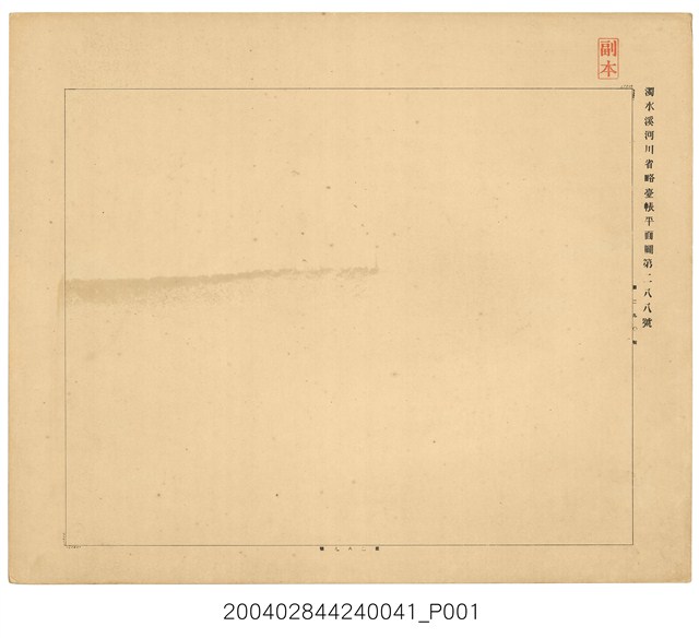 本圖為《濁水溪河川省略臺帳平面圖 》之一幅,比例尺二千五百分一,製作者臺灣總督府土木局水利課(或土木課水利股),準用河川省略臺帳平面圖之圖號為「濁水溪河川省略臺帳平面圖第二八八號」,依據地租規則之圖號未載。右上蓋有「副本」方戳。