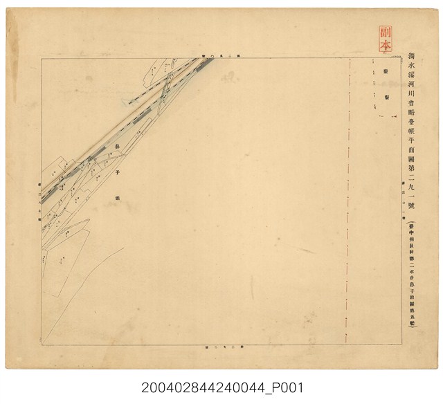 本圖為《濁水溪河川省略臺帳平面圖 》之一幅,比例尺二千五百分一,製作者臺灣總督府土木局水利課(或土木課水利股),準用河川省略臺帳平面圖之圖號為「濁水溪河川省略臺帳平面圖第二九一號」,依據地租規則之圖號為「臺中州員林郡二水庄鼻子頭圖第五號」。右上蓋有「副本」方戳。
