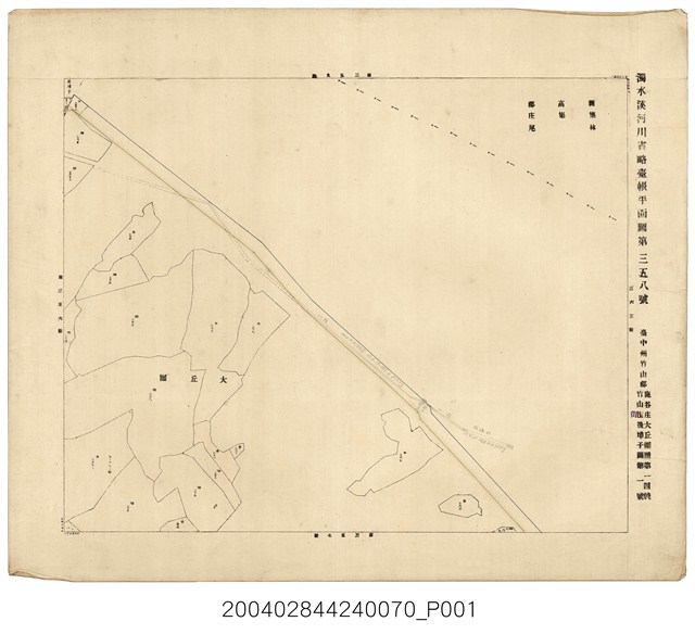 本圖為《濁水溪河川省略臺帳平面圖 》之一幅,比例尺二千五百分一,製作者臺灣總督府土木局水利課(或土木課水利股),準用河川省略臺帳平面圖之圖號為「濁水溪河川省略臺帳平面圖第三五八號」,依據地租規則之圖號為「臺中州竹山郡鹿谷庄大丘園圖第一四號」、「臺中州竹山郡竹山街後埔子圖第一號」。